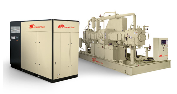 在生產(chǎn)大型瓶子時經(jīng)常要耗費(fèi)大量的高壓和低壓的壓縮空氣。對于選用組合式空氣系統(tǒng)的某些用戶,英格索蘭可以提供主壓縮機(jī)配備增壓器的系統(tǒng)解決方案。這種組合的優(yōu)勢在于他允許每個流程可以獨(dú)立增加流量。主壓縮機(jī)可以選擇無油螺桿壓縮機(jī)或離心式壓縮機(jī),無需要經(jīng)常維護(hù)保養(yǎng)。堅固的兩級無油潤滑活塞機(jī)可以作為增壓器使用。